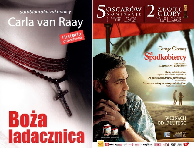 Mimo wszystko staram się czytać, zwłaszcza w drodze do/ z pracy. Towarzyszy mi w tych chwilach naprawdę świetna i wciągająca lektura: "Boża ladacznica", napisana w bardzo otwarty sposób biografia pewnej byłej zakonnicy. Już się nie mogę doczekać jak dotrę do momentu opisywanych przez autorkę zmian, które w niej zaszły... Ach! Także to pierwsza recenzja książkowa, która się pojawi na blogu. Nawet dzisiaj nie miałam czasu na napisanie mojej małej opinii dotyczącego jakiegokolwiek filmu, który oglądałam niedawno. Przede mną seans domowy: "Spadkobierców", których jestem ciekawa i przez sesje ciągle są oni odsuwani na dalszy plan. Natomiast w niedzielę byłam w kinie na "Movie 43", ale odpuszczę sobie pisanie na temat tego filmu, bo nie mam chyba wyrobionego zdania o nim i nie wiem jakbym miała go określić. W przyszłym tygodniu można się jednak u mnie spodziewać poruszenia w notkach z opiniami, zatem trzymajcie kciuki. Teraz właśnie uświadomiłam sobie, że już w przyszły czwartek jest koniec miesiąca, czyli ukaże się tutaj kolejny stos. I już zdradzę, że pojawiło się w moim domu kilka ładnych książek, za które zabiorę się w najbliższym czasie.